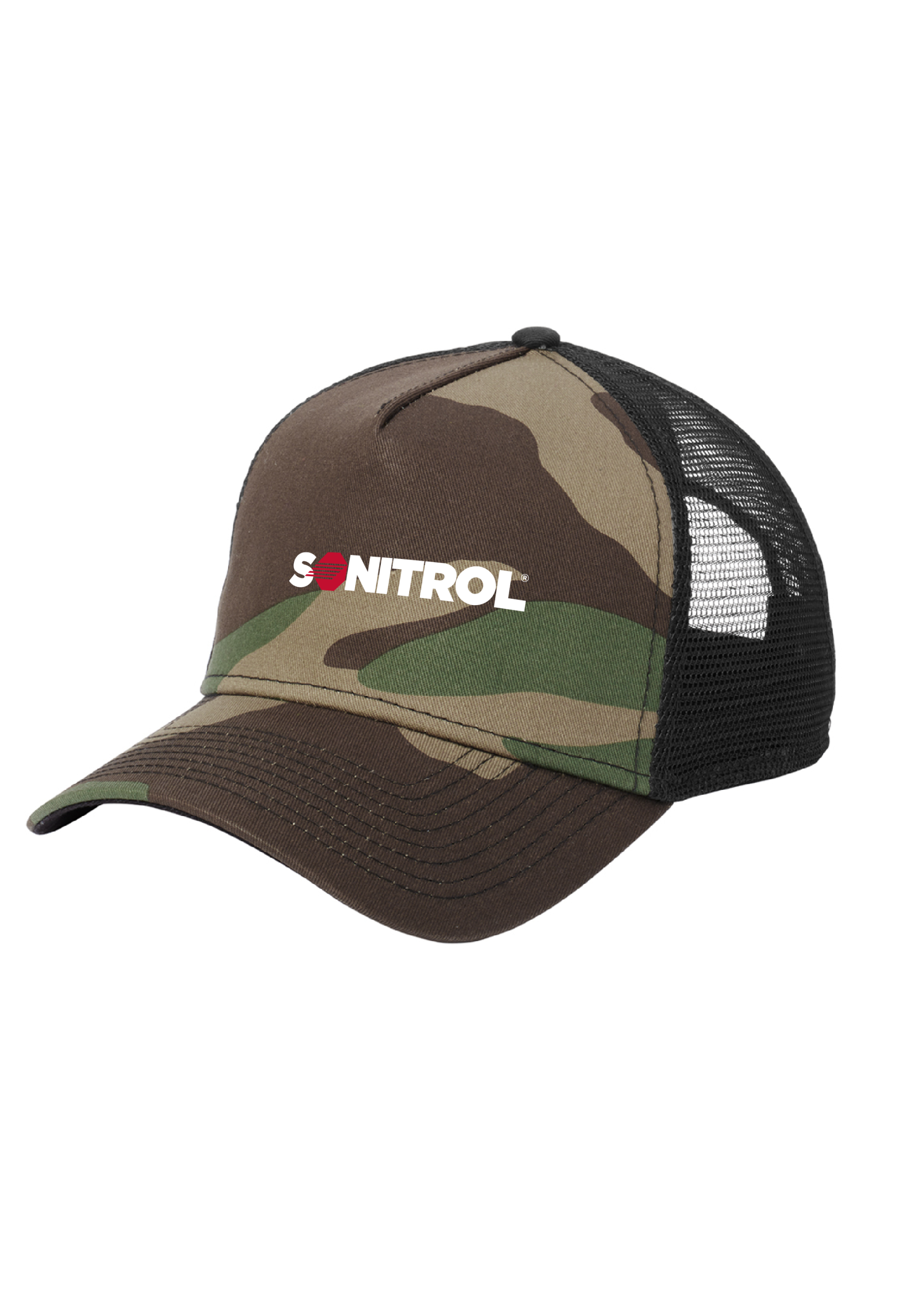 100% cotton twill front panels and bill; 100% polyester mid and back panels